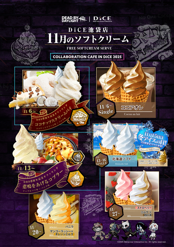 ソフトクリームスケジュール 各店のスケジュールはこちら 札幌駅南口店 札幌狸小路本店 仙台店 大宮店 赤羽店 池袋北口店 池袋西口店 新小岩店 渋谷ちとせ会館店 自由が丘店 大井町店 大森店 蒲田駅西口店 雑色店 川崎チネチッタ通店 川崎仲見世通店 溝口店 相模大野モアーズ店 伊勢佐木町店 戸塚店 横須賀中央三笠店 大阪道頓堀本店 大阪梅田東通店 クリスマスらしいフレーバー続々登場!新作はベルギーミルクチョコレート! > 池袋店TOPに戻る 電話 ご予約はこちら ネットカフェダイス ネットカフェ&カラオケ DiCE 池袋店 ソフトクリームスケジュール