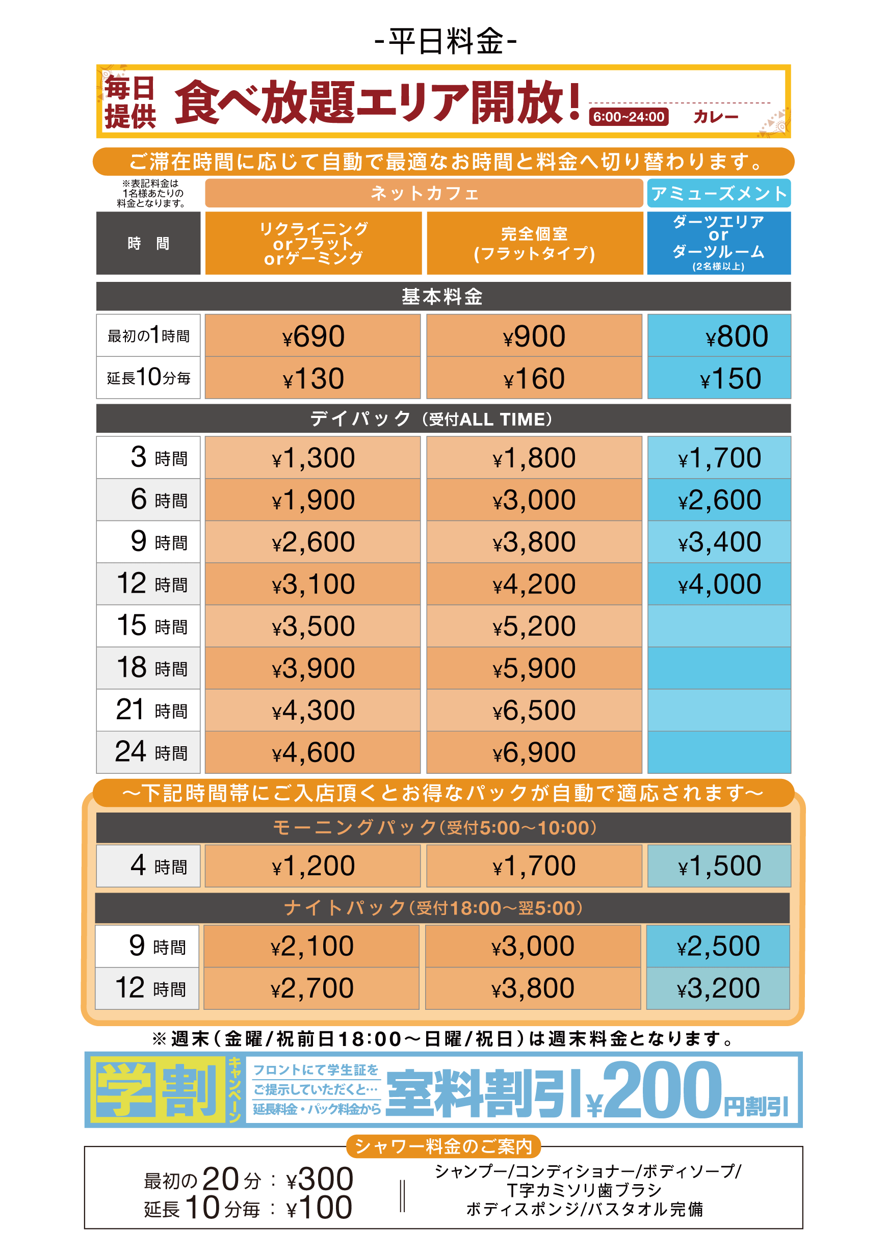 • 平日料金