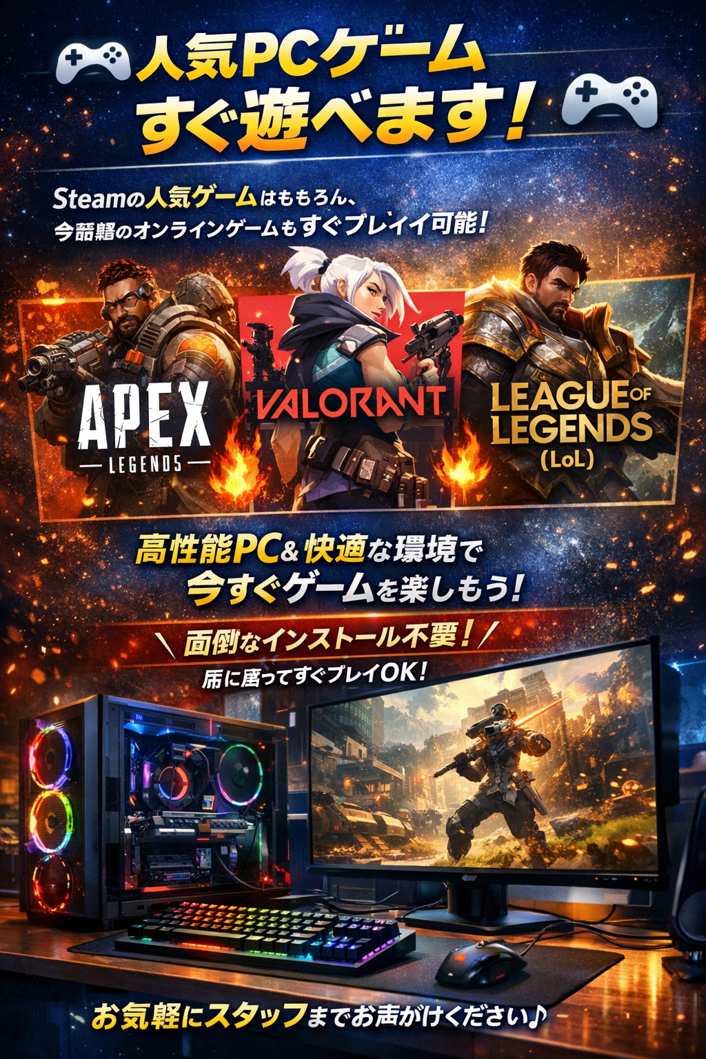 ・最新のe-sportsゲームで遊びたい