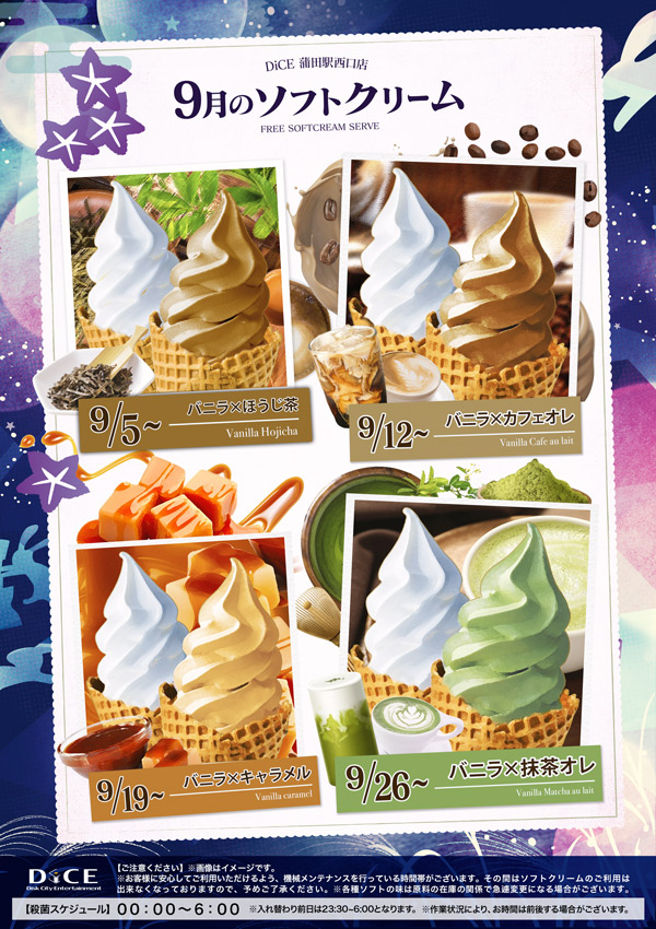 ソフトクリームスケジュール 各店のスケジュールはこちら 札幌駅南口店 札幌狸小路本店 仙台店 大宮店 赤羽店 池袋北口店 池袋西口店 池袋店 新小岩店 渋谷ちとせ会館店 自由が丘店 大井町店 大森店 雑色店 川崎チネチッタ通店 溝口店 相模大野モアーズ店 伊勢佐木町店 戸塚店 横須賀中央三笠店 大阪道頓堀本店 大阪梅田東通店 9月、10月ソフトスケジュールはこちら♪ > 蒲田駅西口店TOPに戻る 電話 ご予約はこちら ネットカフェダイス ネットカフェ&ダーツ DiCE 蒲田駅西口店 ソフトクリームスケジュール