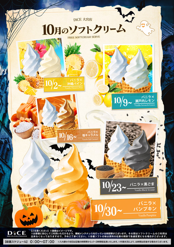 ソフトクリームスケジュール 各店のスケジュールはこちら 札幌駅南口店 札幌狸小路本店 仙台店 赤羽店 池袋北口店 池袋西口店 池袋店 新小岩店 渋谷ちとせ会館店 自由が丘店 大井町店 大森店 蒲田駅西口店 雑色店 川崎チネチッタ通店 川崎仲見世通店 溝口店 相模大野モアーズ店 伊勢佐木町店 戸塚店 横須賀中央三笠店 大阪道頓堀本店 大阪梅田東通店 11月分 ソフトスケジュール > 大宮店TOPに戻る 電話 ご予約はこちら ネットカフェダイス ネットカフェ&カラオケ DiCE 大宮店 ソフトクリームスケジュール