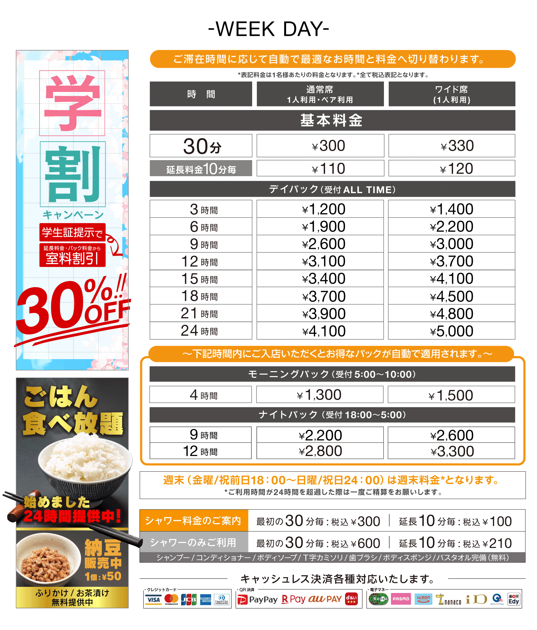 電子マネー・カード・QR可能