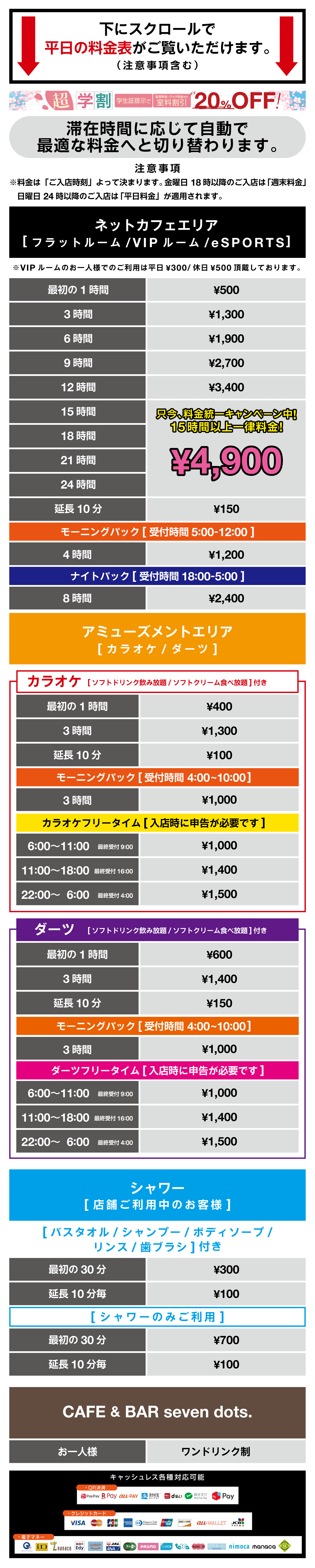 電子マネー・カード・QR可能