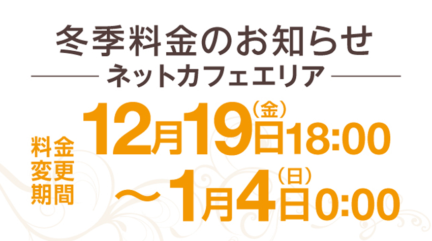 - ご予約料金(ネットカフェエリアのみ)