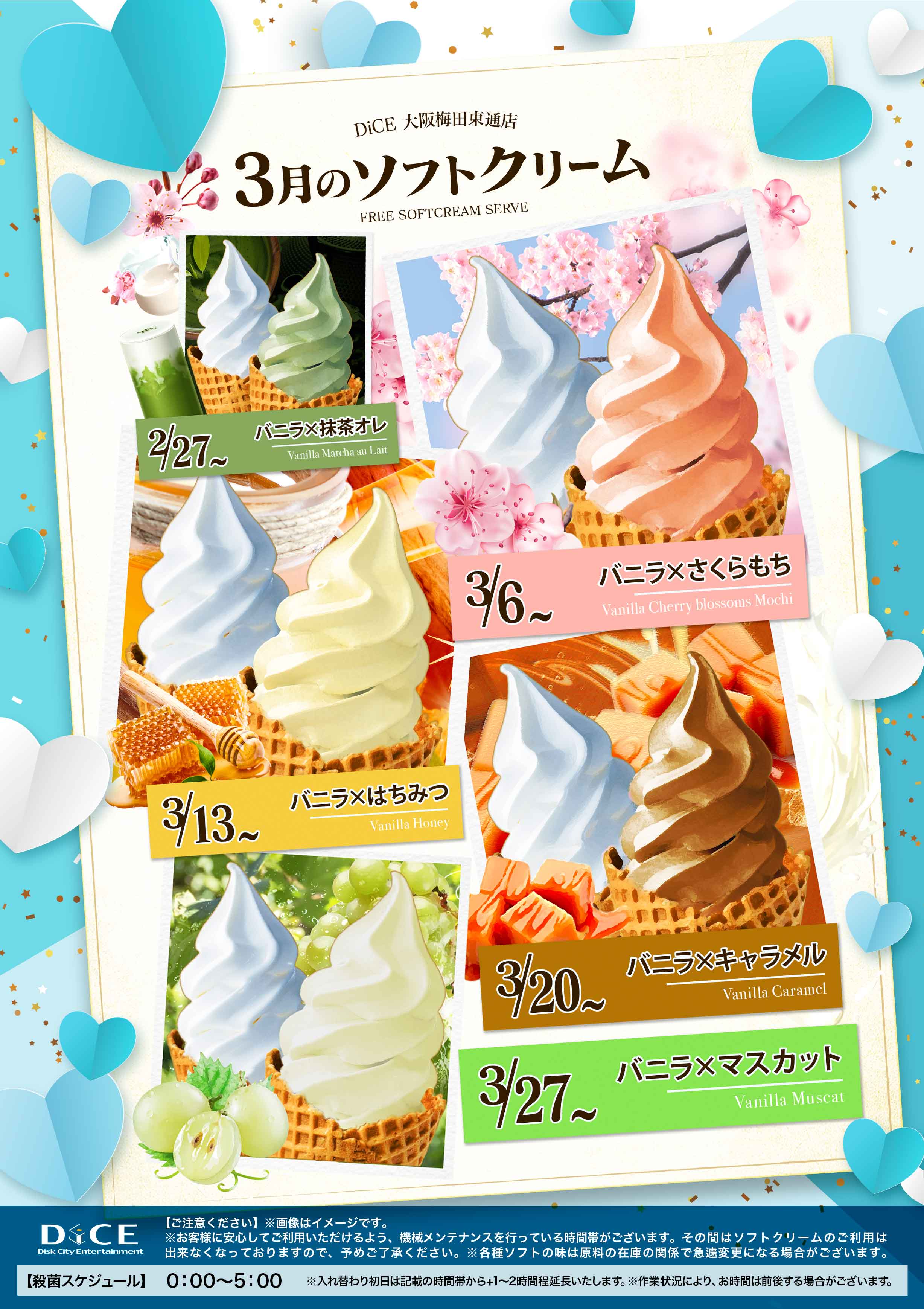 ソフトクリームスケジュール 各店のスケジュールはこちら 札幌駅南口店 札幌狸小路本店 仙台店 大宮店 赤羽店 池袋北口店 池袋西口店 池袋店 新小岩店 渋谷ちとせ会館店 自由が丘店 大井町店 大森店 蒲田駅西口店 雑色店 川崎仲見世通店 溝口店 相模大野モアーズ店 伊勢佐木町店 戸塚店 横須賀中央三笠店 大阪道頓堀本店 3月ソフトクリーム予定表 > 大阪梅田東通店TOPに戻る 電話 ご予約はこちら ネットカフェダイス 完全個室ネットカフェ DiCE 大阪梅田東通店 ソフトクリームスケジュール