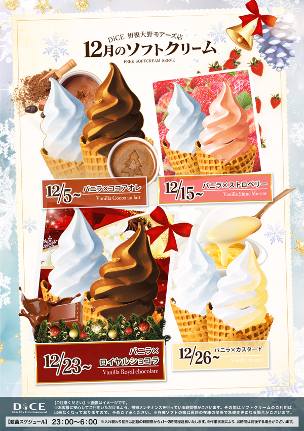 ソフトクリームスケジュール 各店のスケジュールはこちら 札幌駅南口店 札幌狸小路本店 仙台店 大宮店 赤羽店 池袋北口店 池袋西口店 池袋店 新小岩店 渋谷ちとせ会館店 自由が丘店 大井町店 大森店 蒲田駅西口店 雑色店 川崎チネチッタ通店 川崎仲見世通店 溝口店 伊勢佐木町店 戸塚店 横須賀中央三笠店 大阪道頓堀本店 大阪梅田東通店 11月 12月 ソフトクリーム > 相模大野モアーズ店TOPに戻る 電話 ご予約はこちら ネットカフェダイス インターネット&マンガ喫茶 DiCE 相模大野モアーズ店 ソフトクリームスケジュール