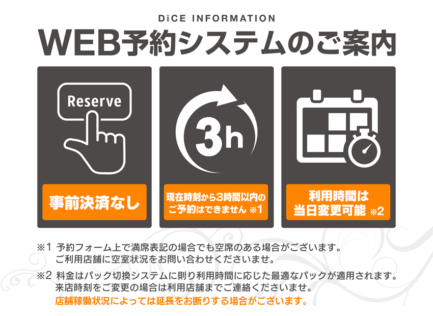 ダイスではご来店前にお席のご予約が可能です。