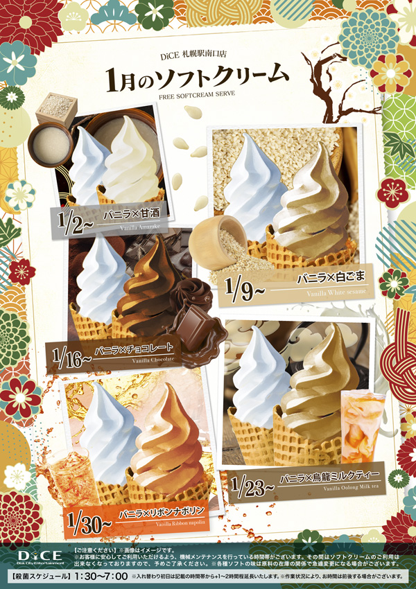 ソフトクリームスケジュール 各店のスケジュールはこちら 札幌狸小路本店 仙台店 大宮店 赤羽店 池袋北口店 池袋西口店 池袋店 新小岩店 渋谷ちとせ会館店 自由が丘店 大井町店 大森店 蒲田駅西口店 雑色店 川崎チネチッタ通店 川崎仲見世通店 溝口店 相模大野モアーズ店 伊勢佐木町店 戸塚店 横須賀中央三笠店 大阪道頓堀本店 大阪梅田東通店 1月度ソフトクリーム予定表 > 札幌駅南口店TOPに戻る 電話 ご予約はこちら ネットカフェダイス ネットカフェ&マンガ喫茶 DiCE 札幌駅南口店 ソフトクリームスケジュール
