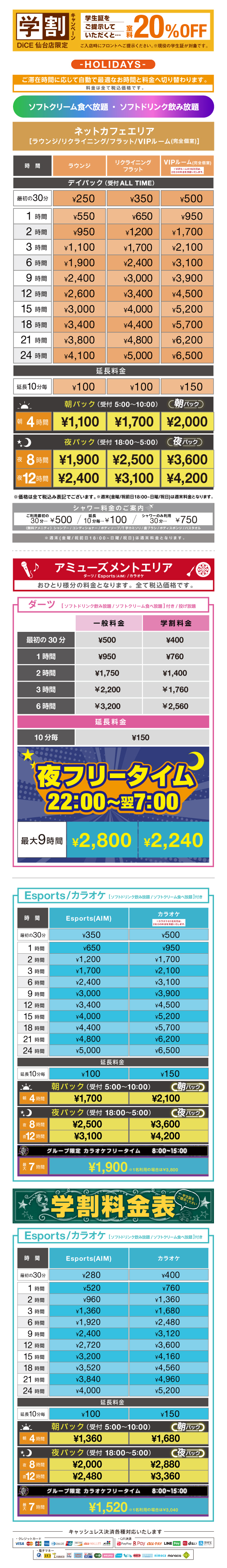 30分間500円(シャワーのみご利用の場合30分750円〜)でご利用いただけます。