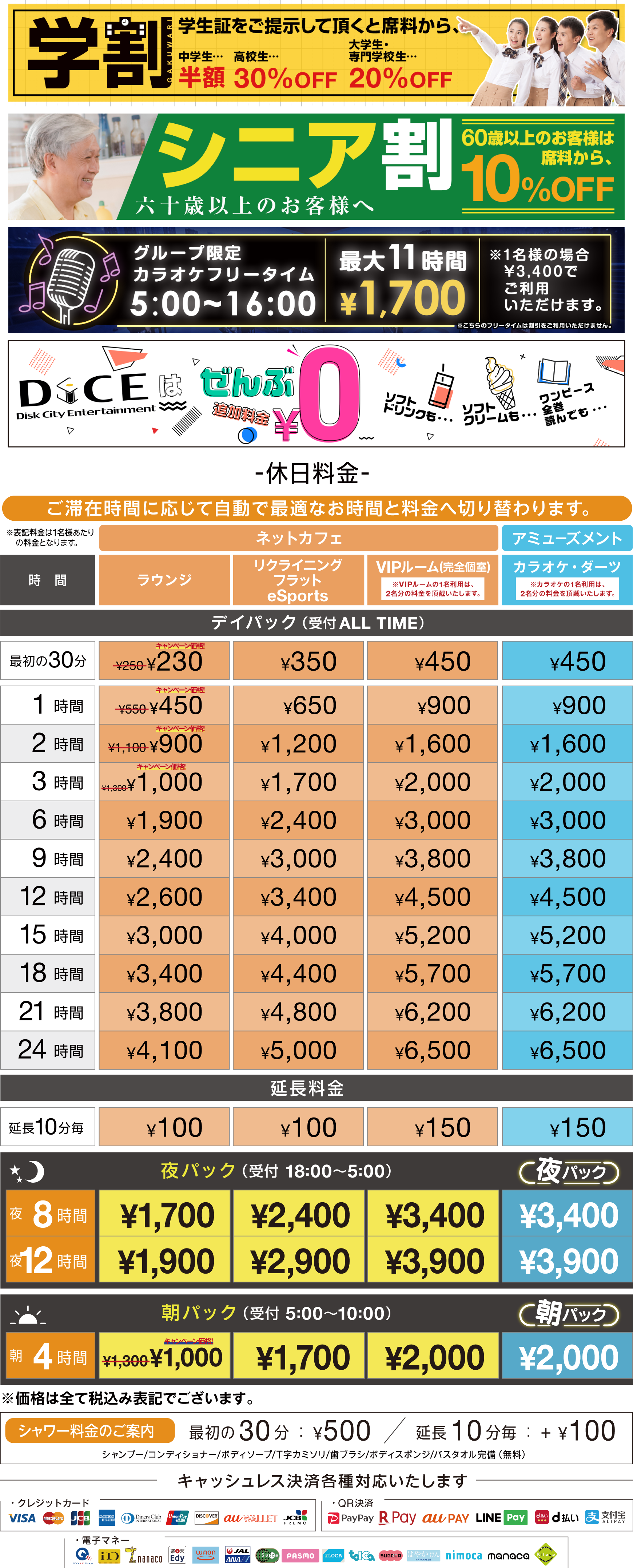 電子マネー・カード・QR可能
