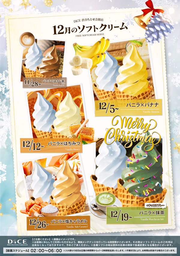 ソフトクリームスケジュール 各店のスケジュールはこちら 札幌駅南口店 札幌狸小路本店 仙台店 大宮店 赤羽店 池袋北口店 池袋西口店 池袋店 新小岩店 自由が丘店 大井町店 大森店 蒲田駅西口店 雑色店 川崎チネチッタ通店 川崎仲見世通店 溝口店 相模大野モアーズ店 伊勢佐木町店 戸塚店 横須賀中央三笠店 大阪道頓堀本店 大阪梅田東通店 11.12月のソフトクリーム予定表 > 渋谷ちとせ会館店TOPに戻る 電話 ご予約はこちら ネットカフェダイス 完全個室ネットカフェ DiCE 渋谷ちとせ会館店 ソフトクリームスケジュール