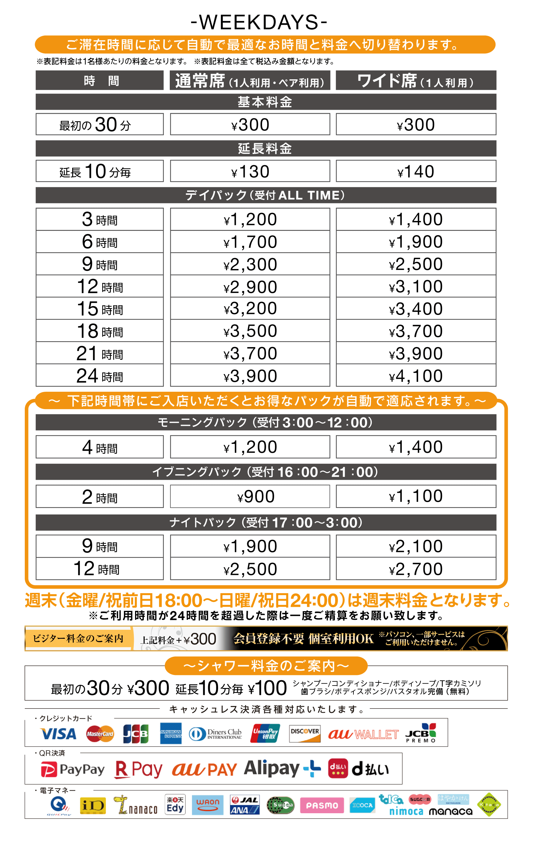 豊富な種類のドリンクや、シャワールーム、プリンターまで、