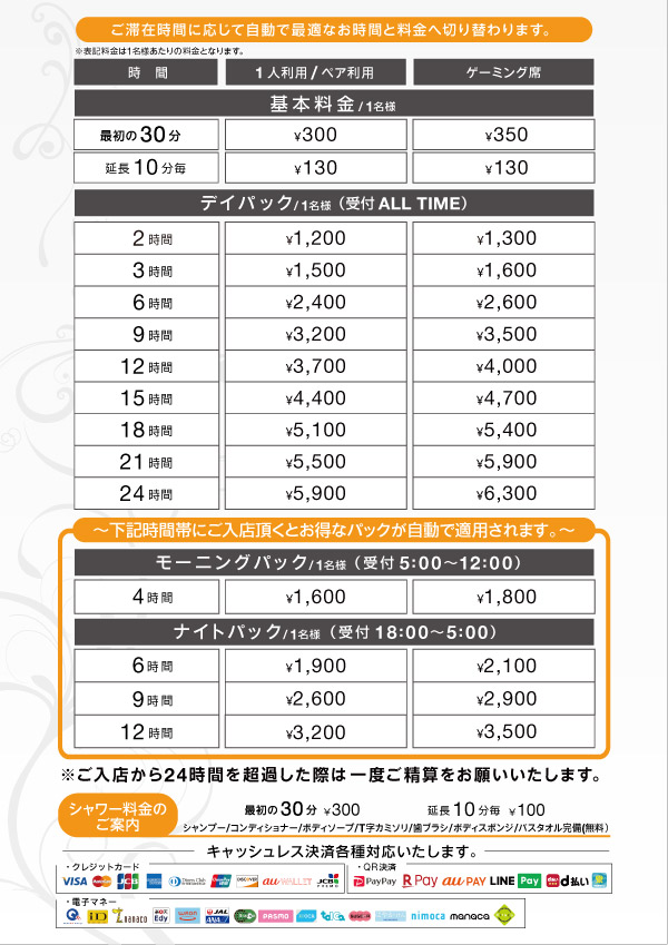 電子マネー・カード・QR可能
