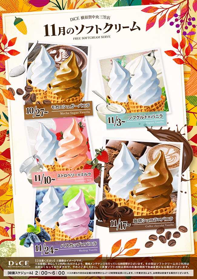 ソフトクリームスケジュール 各店のスケジュールはこちら 札幌駅南口店 札幌狸小路本店 仙台店 大宮店 赤羽店 池袋北口店 池袋西口店 池袋店 新小岩店 渋谷ちとせ会館店 自由が丘店 大井町店 大森店 蒲田駅西口店 雑色店 川崎チネチッタ通店 川崎仲見世通店 溝口店 相模大野モアーズ店 伊勢佐木町店 戸塚店 大阪道頓堀本店 大阪梅田東通店 11月のソフトクリームスケジュールはこちら♪ > 横須賀中央三笠店TOPに戻る 電話 ご予約はこちら ネットカフェダイス インターネット&マンガ喫茶 DiCE 横須賀中央三笠店 ソフトクリームスケジュール