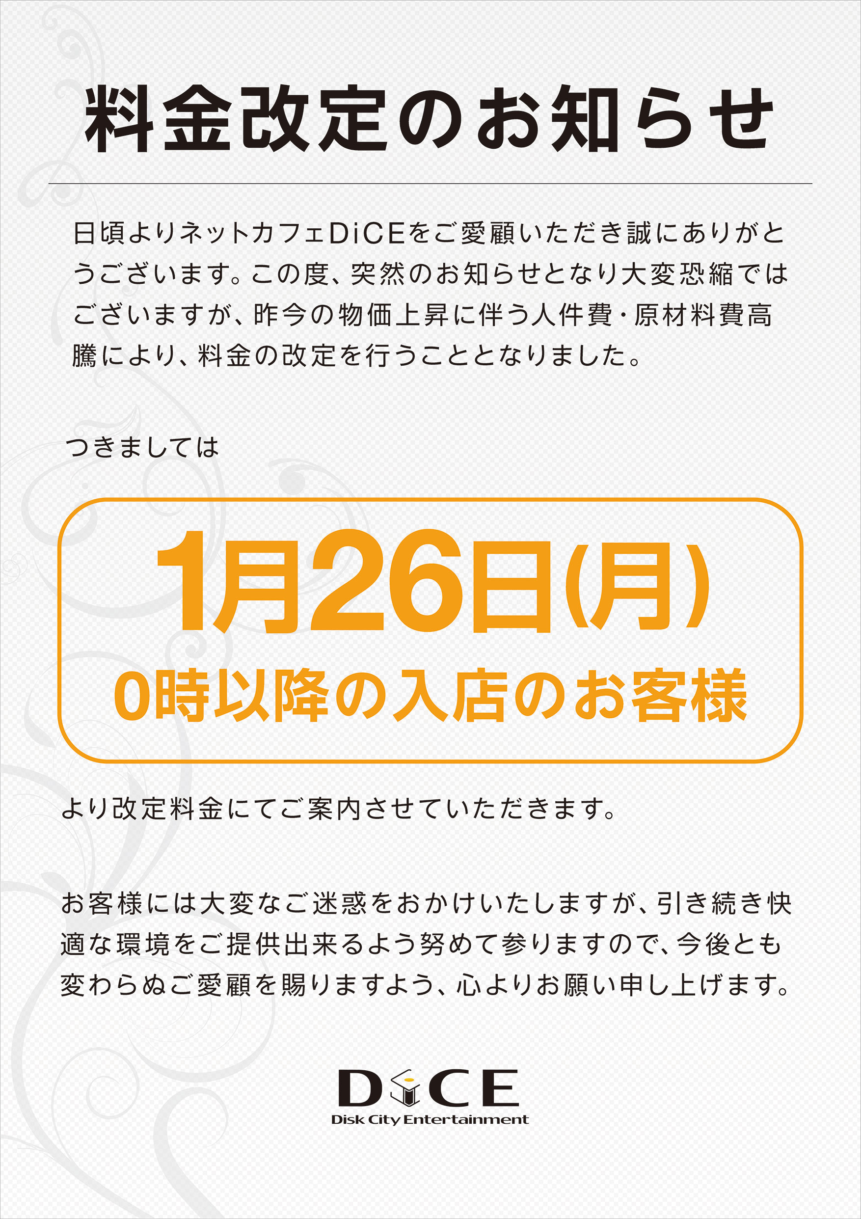 料金改定のお知らせ
