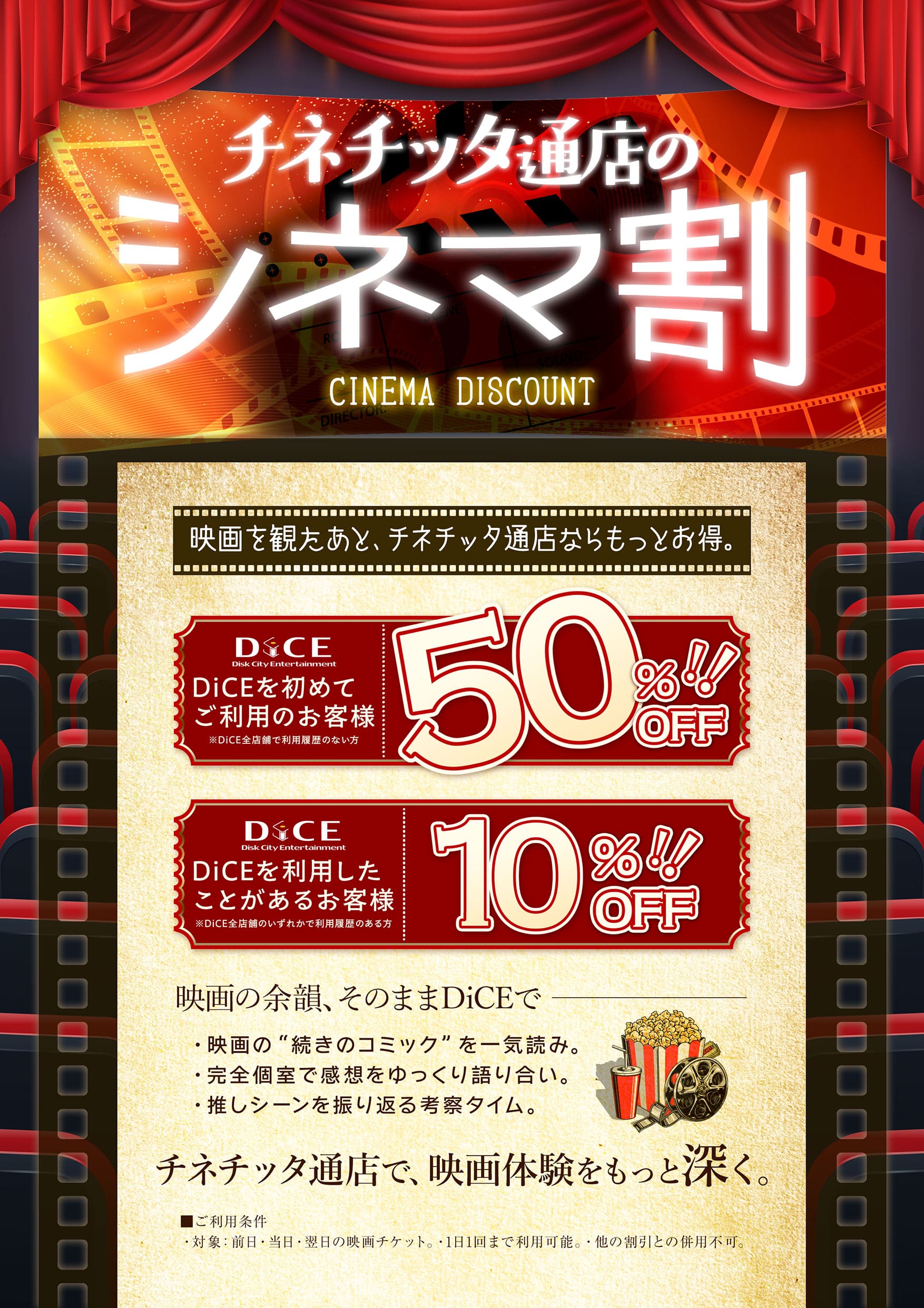 ニュース お知らせ 2025.11.17 映画半券をご提示でお得にDiCEが使えます! > ニュース一覧に戻る 電話 ご予約はこちら ネットカフェダイス 完全個室ネットカフェ DiCE 川崎チネチッタ通店 ニュース 映画半券をご提示でお得にDiCEが使えます!