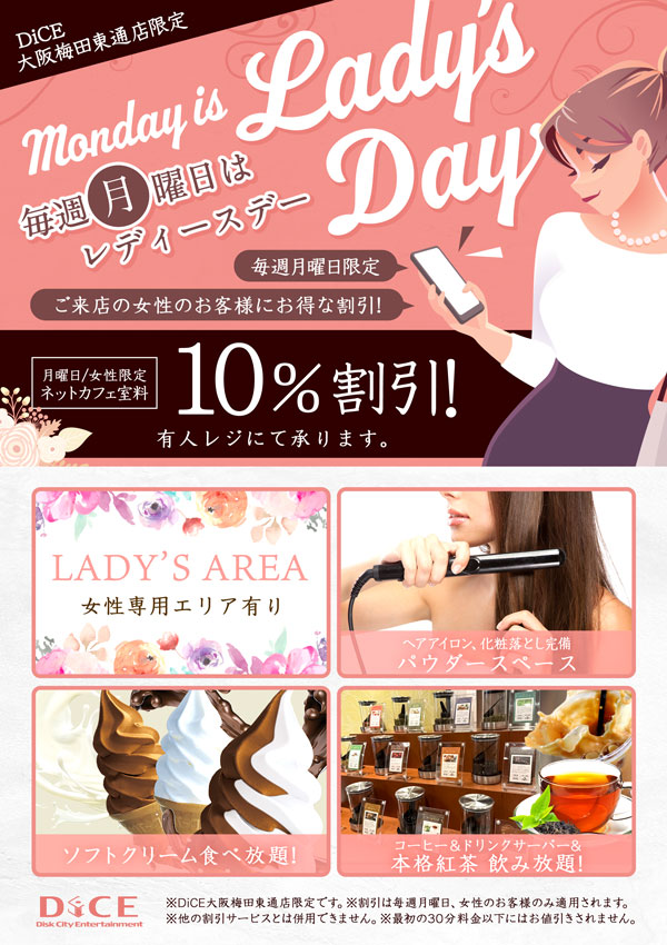 ニュース お知らせ 2025.11.12 ネットカフェ 月曜レディースデークーポン配布開始! > ニュース一覧に戻る 電話 ご予約はこちら ネットカフェダイス 完全個室ネットカフェ DiCE 大阪梅田東通店 ニュース ネットカフェ 月曜レディースデークーポン配布開始!