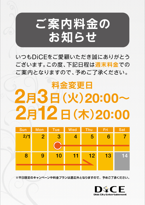 特別料金についてのお知らせ