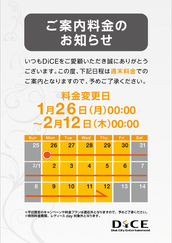 ニュース お知らせ 2026.01.26 『特別料金期間」のお知らせ > ニュース一覧に戻る 電話 ご予約はこちら ネットカフェダイス インターネット&マンガ喫茶 DiCE 札幌駅南口店 ニュース 『特別料金期間」のお知らせ