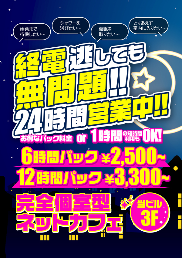 ニュース お知らせ 2025.01.24 DiCE渋谷店は夜間利用のニーズにお応え! > ニュース一覧に戻る 電話 ご予約はこちら ネットカフェダイス インターネット&マンガ喫茶 DiCE 渋谷ちとせ会館店 ニュース DiCE渋谷店は夜間利用のニーズにお応え!