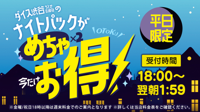 お知らせ2025.01.24DiCE渋谷店は夜間利用のニーズにお応え! -