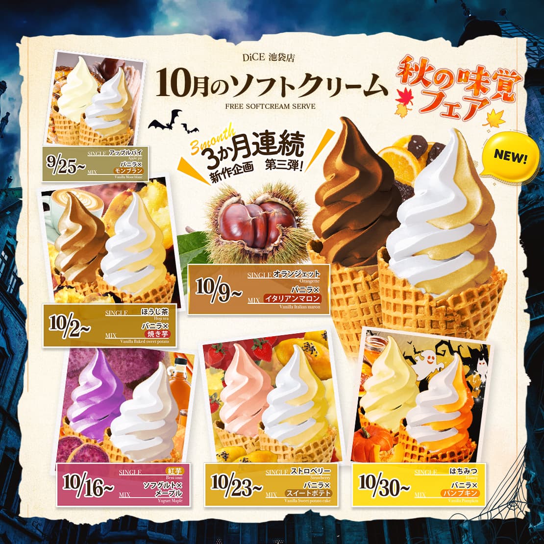 ソフトクリームスケジュール 各店のスケジュールはこちら 札幌駅南口店 札幌狸小路本店 仙台店 大宮店 赤羽店 池袋北口店 池袋西口店 新小岩店 渋谷ちとせ会館店 自由が丘店 大井町店 大森店 蒲田駅西口店 雑色店 川崎チネチッタ通店 川崎仲見世通店 溝口店 相模大野モアーズ店 伊勢佐木町店 戸塚店 横須賀中央三笠店 大阪道頓堀本店 大阪梅田東通店 『Dead by Daylight』コラボソフトに冬ソフトの日記念ソフト!豪華ソフトが続々! > 池袋店TOPに戻る 電話 ご予約はこちら ネットカフェダイス ネットカフェ&カラオケ DiCE 池袋店 ソフトクリームスケジュール