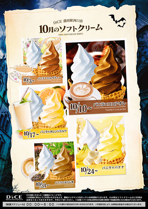ソフトクリームスケジュール 各店のスケジュールはこちら 札幌駅南口店 札幌狸小路本店 仙台店 大宮店 赤羽店 池袋北口店 池袋西口店 池袋店 新小岩店 渋谷ちとせ会館店 自由が丘店 大井町店 大森店 雑色店 川崎チネチッタ通店 溝口店 相模大野モアーズ店 伊勢佐木町店 戸塚店 横須賀中央三笠店 大阪道頓堀本店 大阪梅田東通店 9月、10月ソフトスケジュールはこちら♪ > 蒲田駅西口店TOPに戻る 電話 ご予約はこちら ネットカフェダイス ネットカフェ&ダーツ DiCE 蒲田駅西口店 ソフトクリームスケジュール