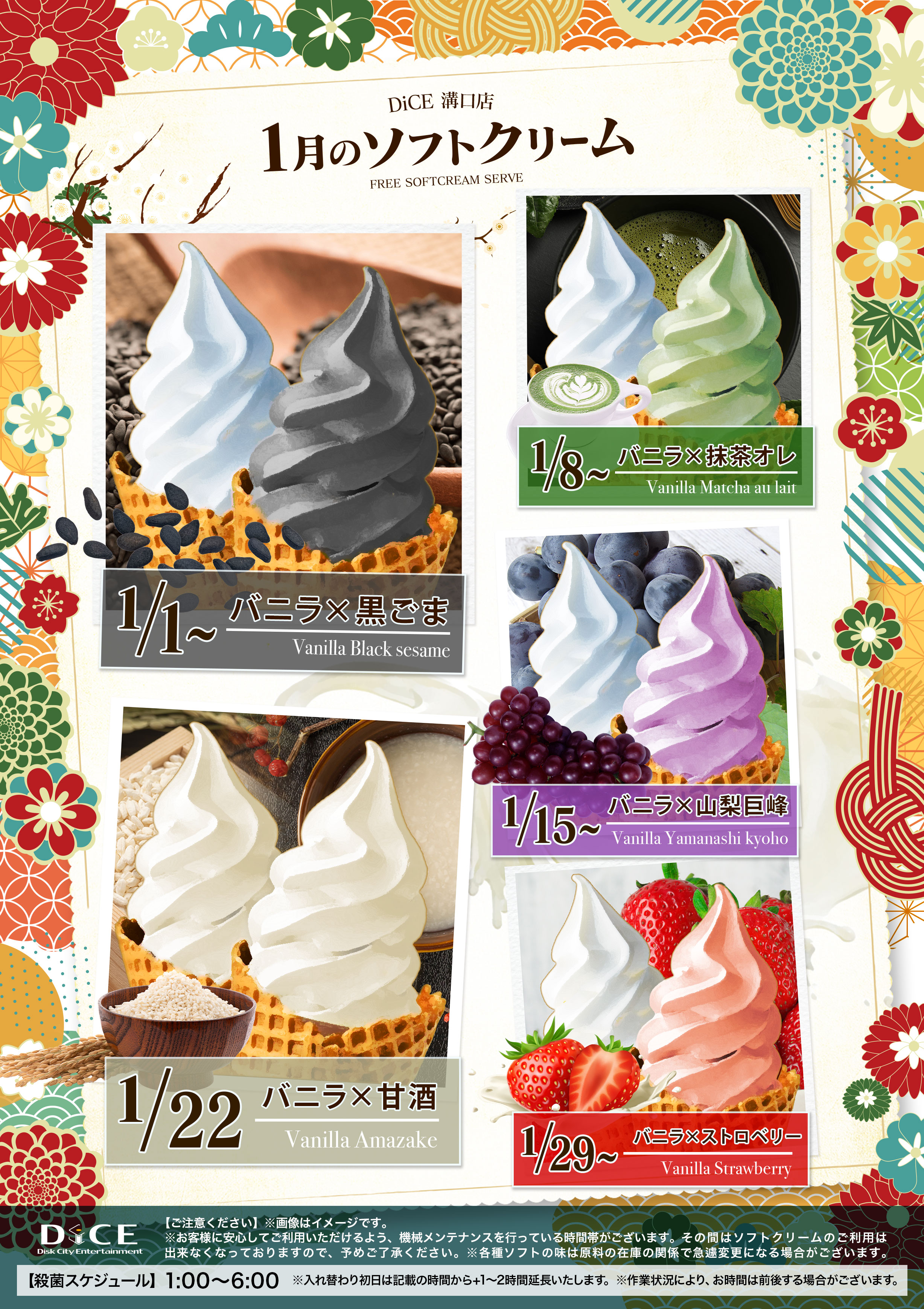 ソフトクリームスケジュール 各店のスケジュールはこちら 札幌駅南口店 札幌狸小路本店 仙台店 大宮店 赤羽店 池袋北口店 池袋西口店 池袋店 新小岩店 渋谷ちとせ会館店 自由が丘店 大井町店 大森店 蒲田駅西口店 雑色店 川崎チネチッタ通店 川崎仲見世通店 相模大野モアーズ店 伊勢佐木町店 戸塚店 横須賀中央三笠店 大阪道頓堀本店 大阪梅田東通店 2月ソフトクリーム予定表 > 溝口店TOPに戻る 電話 ご予約はこちら ネットカフェダイス インターネット&マンガ喫茶 DiCE 溝口店 ソフトクリームスケジュール