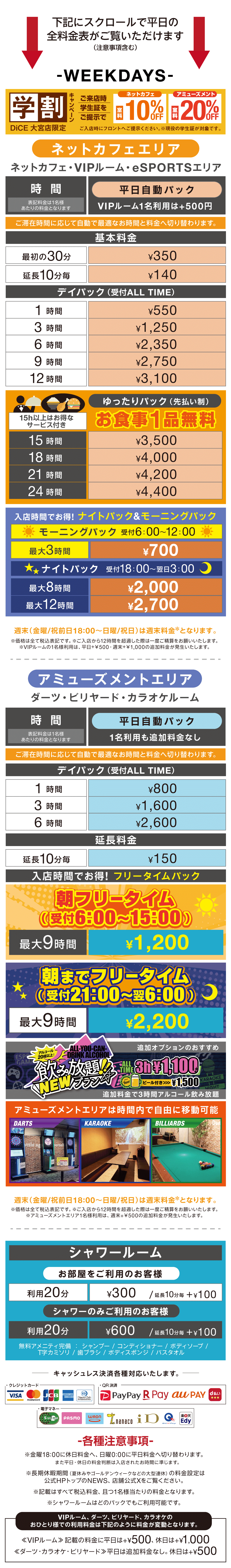 豊富な種類のドリンクや、シャワールーム、プリンターまで、