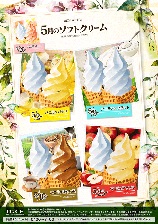 ソフトクリームスケジュール 各店のスケジュールはこちら 札幌駅南口店 札幌狸小路本店 仙台店 大宮店 赤羽店 池袋北口店 池袋西口店 池袋店 新小岩店 渋谷ちとせ会館店 自由が丘店 大森店 蒲田駅西口店 雑色店 川崎チネチッタ通店 川崎仲見世通店 溝口店 相模大野モアーズ店 伊勢佐木町店 戸塚店 横須賀中央三笠店 大阪道頓堀本店 大阪梅田東通店 12月のソフトクリーム予定表 > 大井町店TOPに戻る 電話 ご予約はこちら ネットカフェダイス インターネット&マンガ喫茶 DiCE 大井町店 ソフトクリームスケジュール
