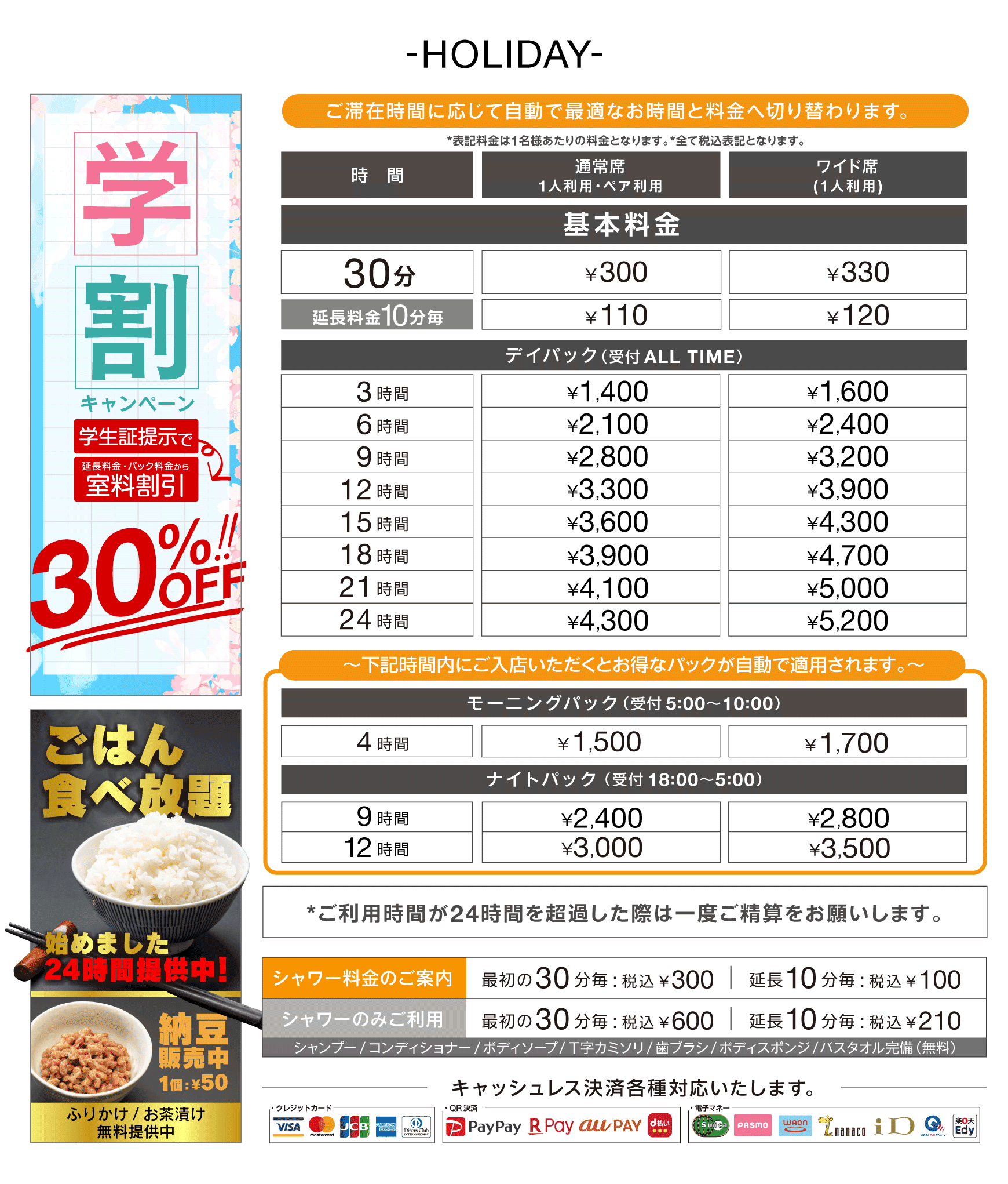 電子マネー・カード・QR可能