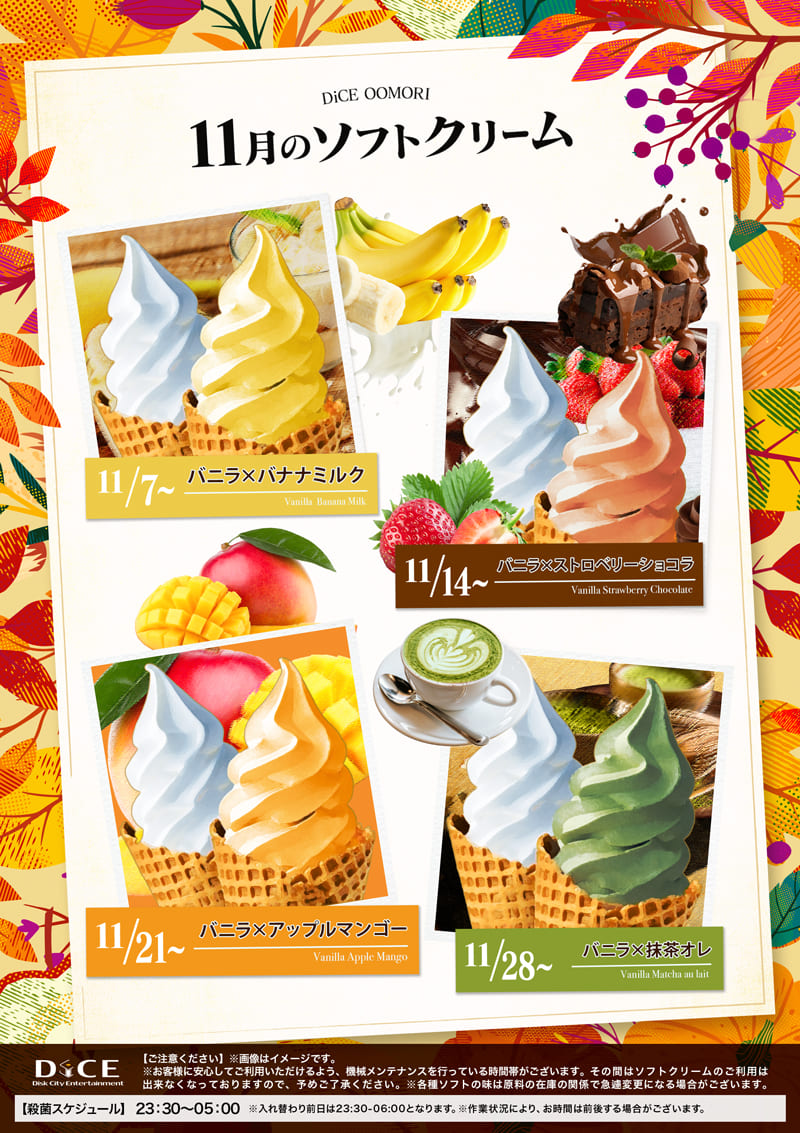 ソフトクリームスケジュール 各店のスケジュールはこちら 札幌駅南口店 札幌狸小路本店 仙台店 大宮店 赤羽店 池袋北口店 池袋西口店 池袋店 新小岩店 渋谷ちとせ会館店 自由が丘店 大井町店 蒲田駅西口店 雑色店 川崎チネチッタ通店 川崎仲見世通店 溝口店 相模大野モアーズ店 伊勢佐木町店 戸塚店 横須賀中央三笠店 大阪道頓堀本店 大阪梅田東通店 12月度ソフトクリーム予定表 > 大森店TOPに戻る 電話 ご予約はこちら ネットカフェダイス インターネット&マンガ喫茶 DiCE 大森店 ソフトクリームスケジュール