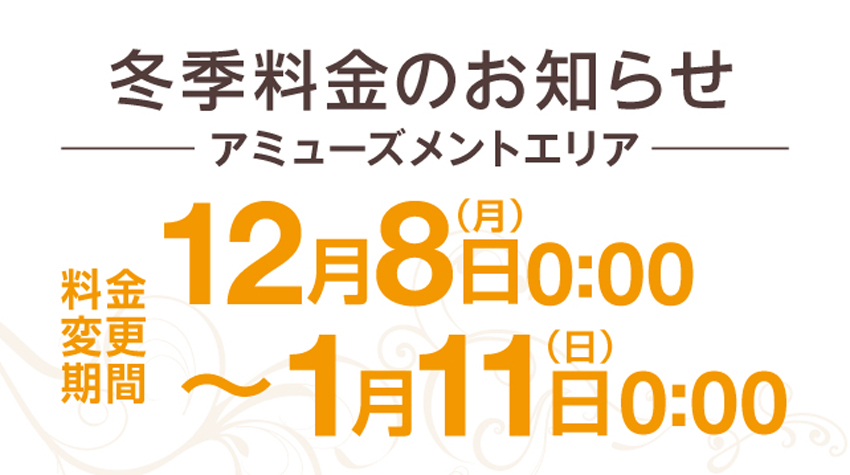 - 平日・休日ともにアミューズメントエリアはご予約料金を頂戴しておりません。
