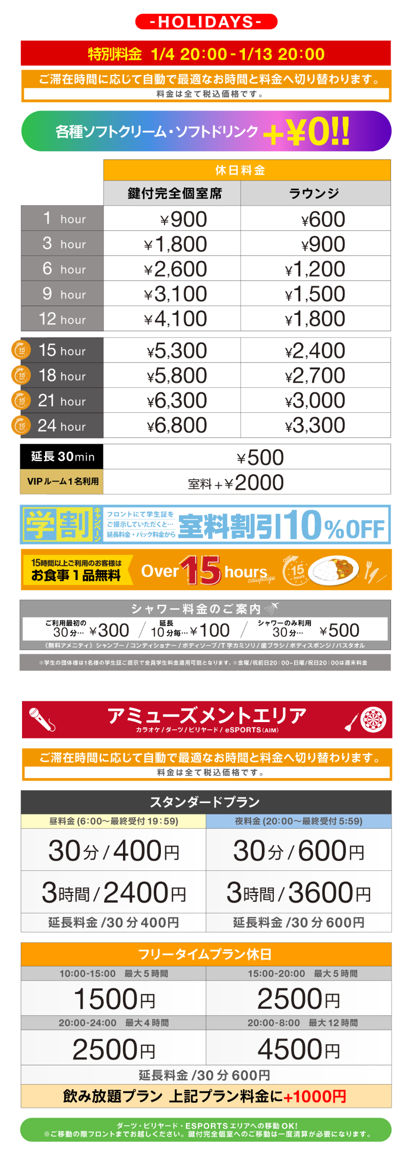 飲食、漫画全てご利用可能です。