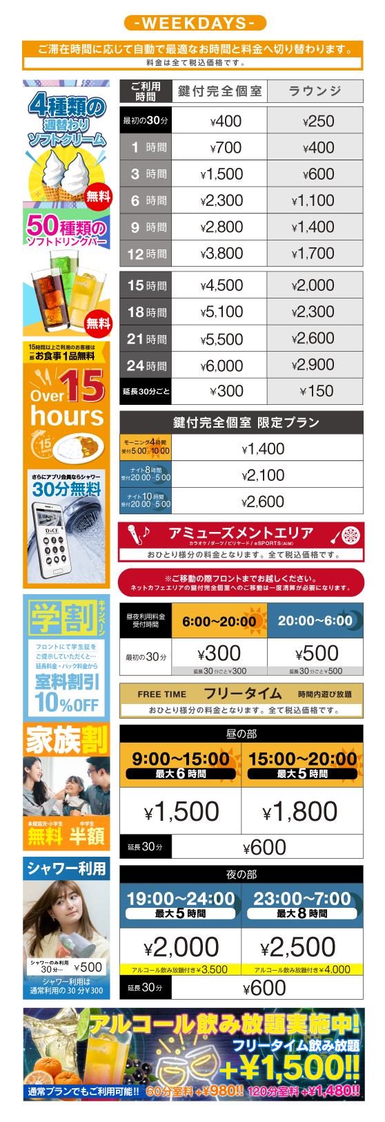 飲食、漫画全てご利用可能です。