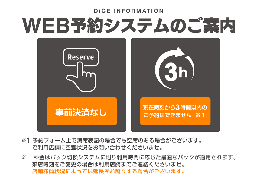 ダイスではご来店前にお席のご予約が可能です。