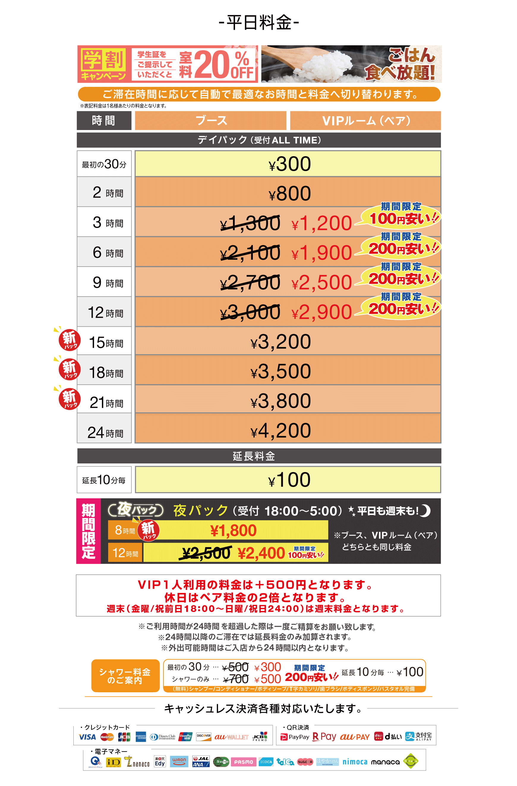 豊富な種類のドリンクや、シャワールーム、プリンターまで、