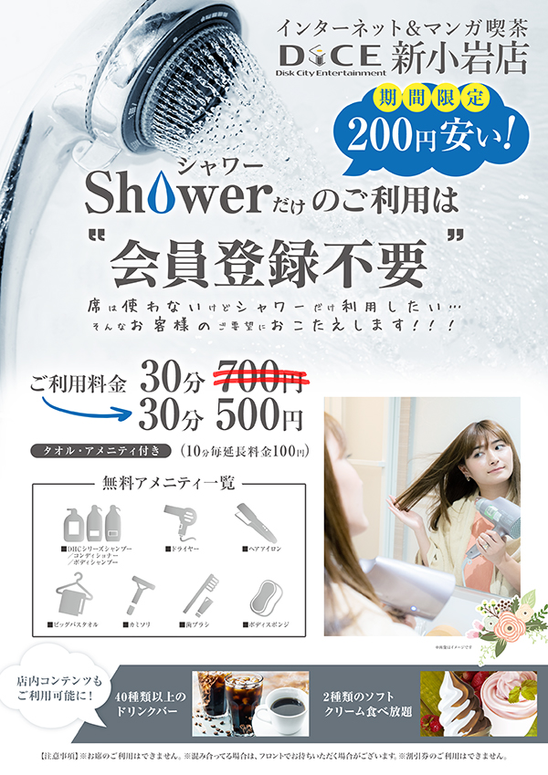 豊富な種類のドリンクや、シャワールーム、プリンターまで、