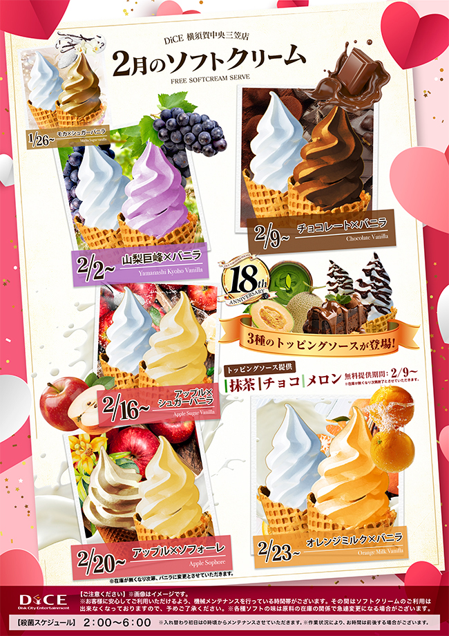 ソフトクリームスケジュール 各店のスケジュールはこちら 札幌駅南口店 札幌狸小路本店 仙台店 大宮店 赤羽店 池袋北口店 池袋西口店 池袋店 新小岩店 渋谷ちとせ会館店 自由が丘店 大井町店 大森店 蒲田駅西口店 雑色店 川崎チネチッタ通店 川崎仲見世通店 溝口店 相模大野モアーズ店 伊勢佐木町店 戸塚店 大阪道頓堀本店 大阪梅田東通店 2月のソフトクリームスケジュールはこちら♪ > 横須賀中央三笠店TOPに戻る 電話 ご予約はこちら ネットカフェダイス インターネット&マンガ喫茶 DiCE 横須賀中央三笠店 ソフトクリームスケジュール