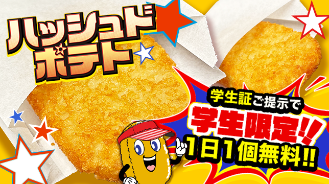 キャンペーン2025.12.06ハッシュドポテト提供中!学生は1日1個無料! -