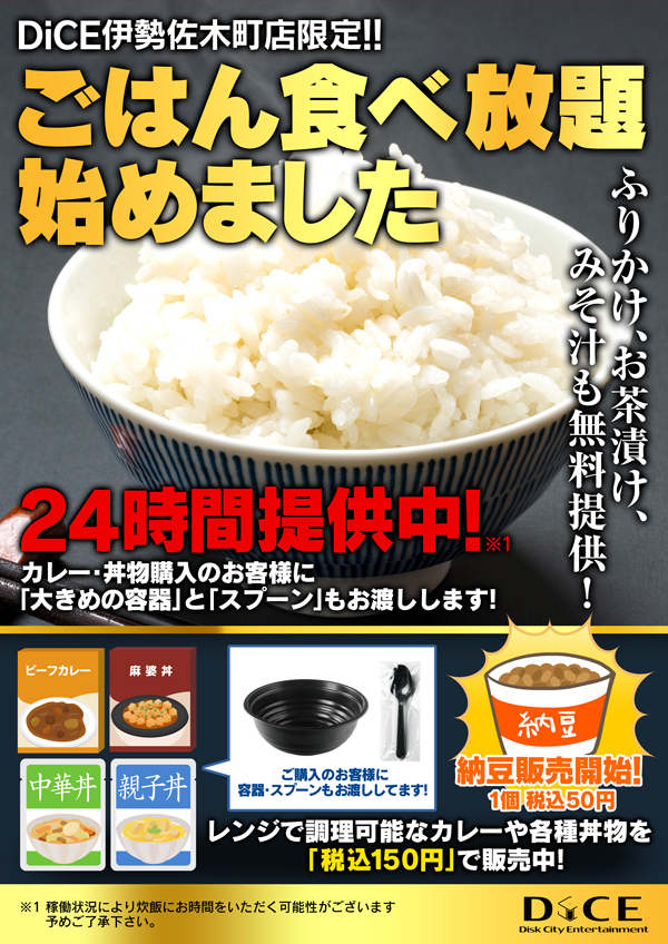 ごはん食べ放題サービス開始いたします!