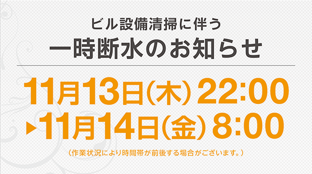 お知らせ2025.11.12【お知らせ】テナント断水のお知らせ -