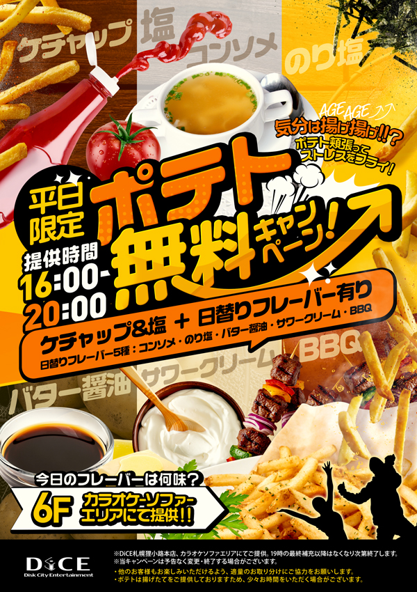 【お得!】ポテトを無料提供開始‼【カラオケエリア】