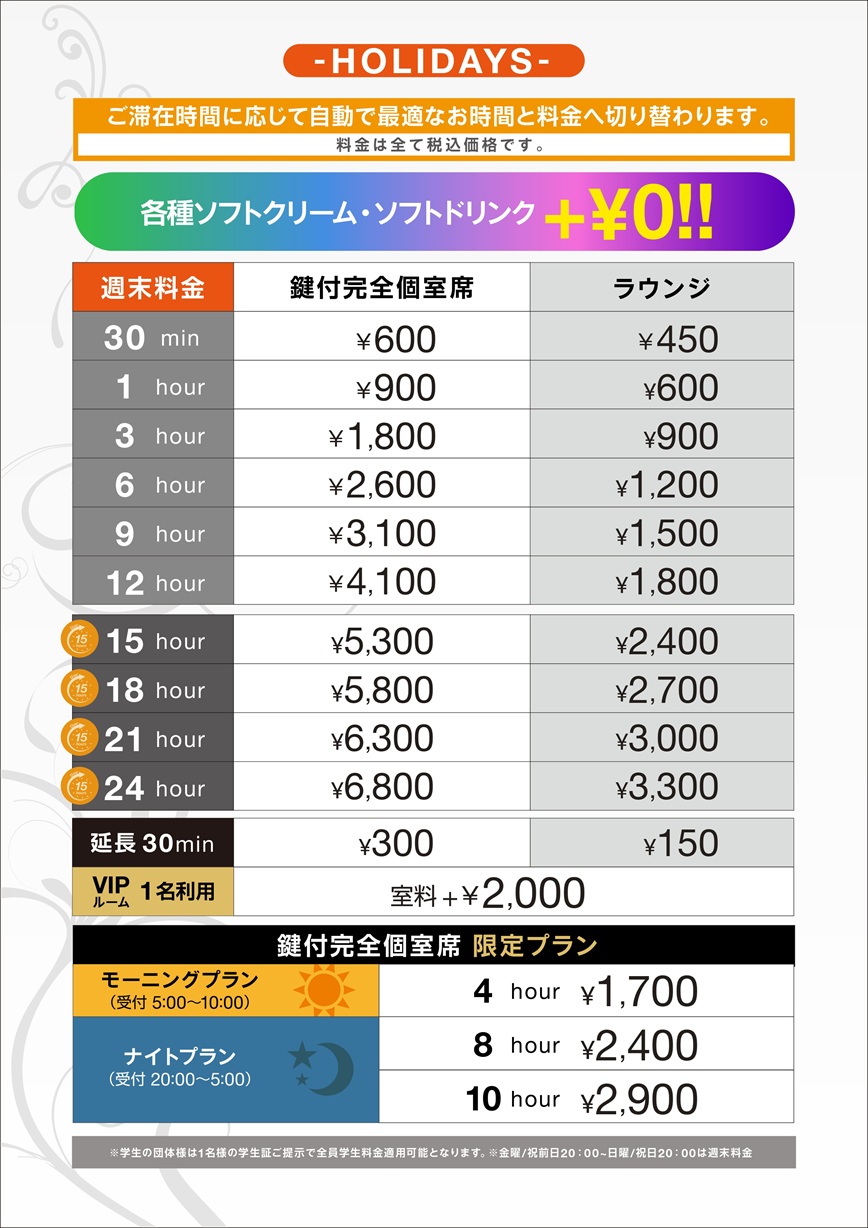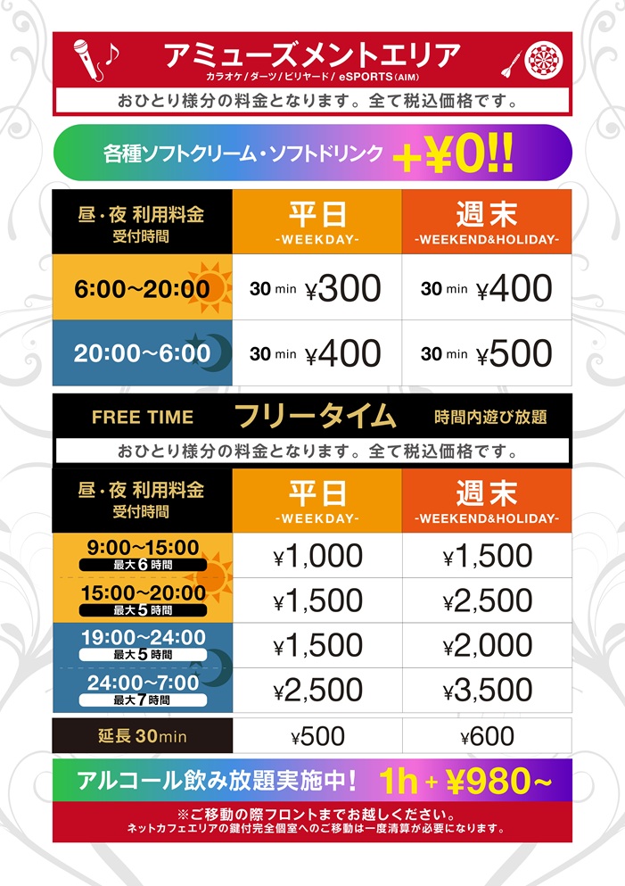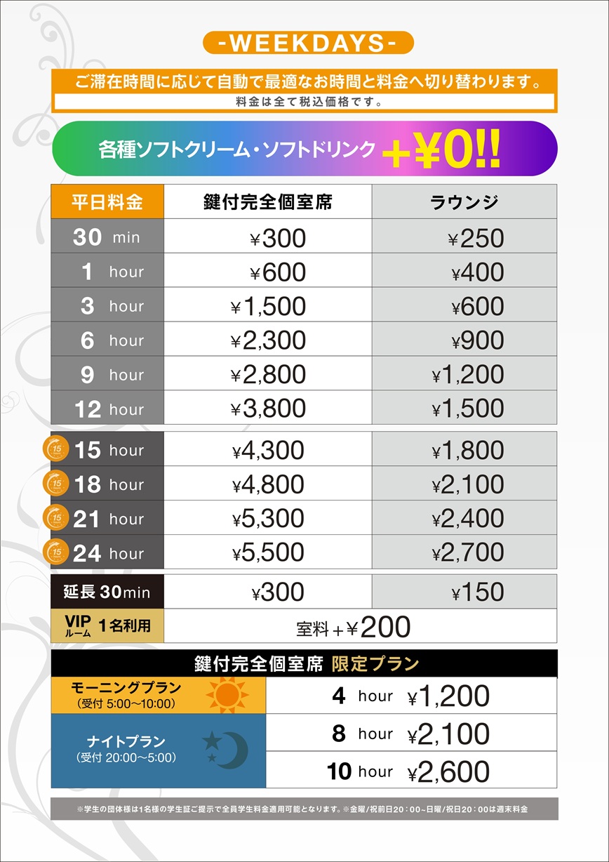 ■ネットカフェ料金表