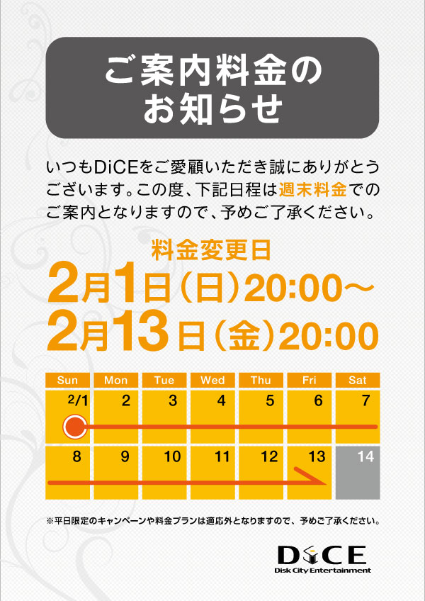特別料金についてのお知らせ
