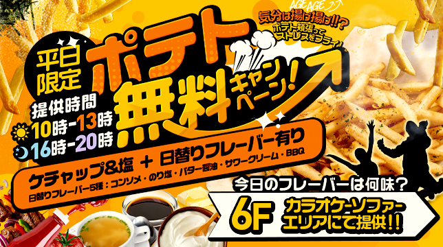キャンペーン2025.12.03【朝も!夜も!】ポテトを無料提供‼【カラオケエリア】 -