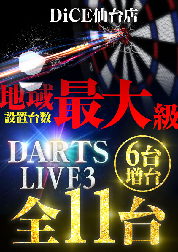 ニュース お知らせ 2025.11.27 【仙台エリア最大級!?】ダーツエリアリニューアルオープン!! > ニュース一覧に戻る 電話 ご予約はこちら ネットカフェダイス ネットカフェ&カラオケ DiCE 仙台店 ニュース 【仙台エリア最大級!?】ダーツエリアリニューアルオープン!!