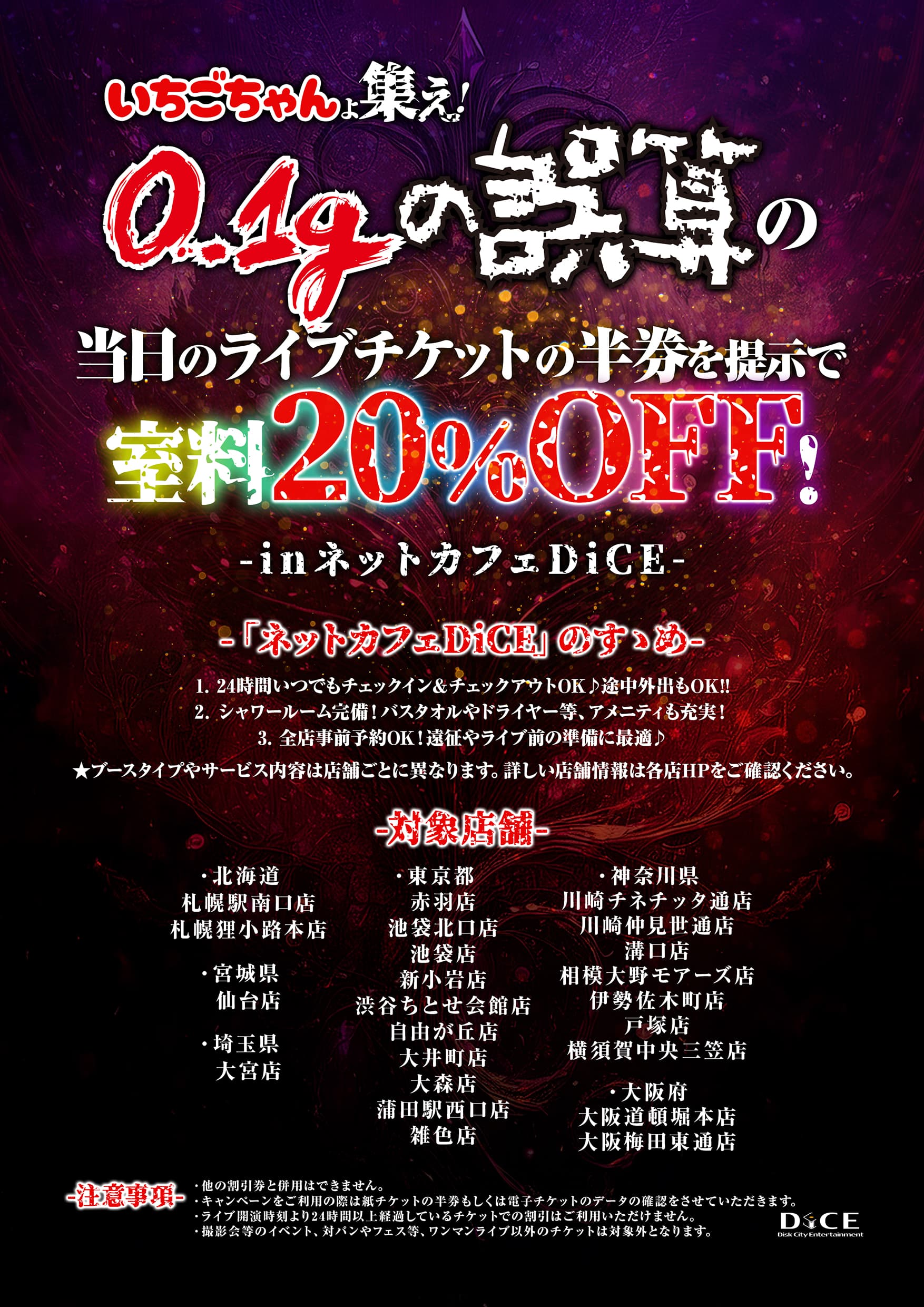 「0.1gの誤算」の当日のライブチケットの半券をご提示で室料20%OFF!!✨